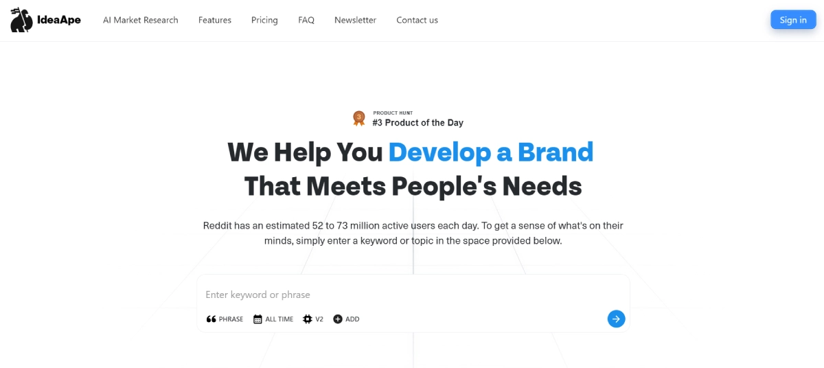PaidIdeaApe is an AI-powered market research platform that uses social media data, particularly from Reddit, to provide businesses with valuable insights into customer preferences, pain points, and market trends. By employing natural language processing and machine learning algorithms, IdeaApe offers real-time customer feedback, sentiment analysis, and market intelligence. This enables businesses to make informed decisions, reducing the risk of ineffective strategies. IdeaApe provides flexible pricing plans to suit various business needs.