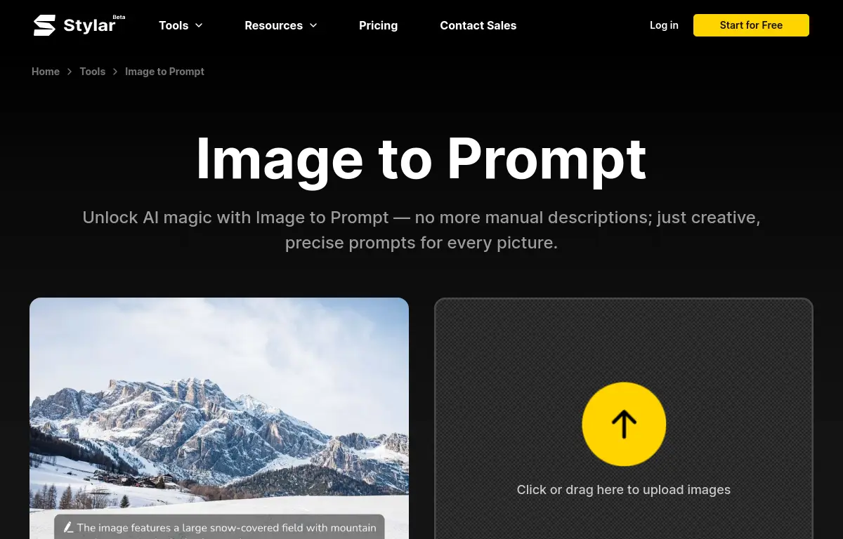 PaidImage to Prompt By Styler AI is an AI-powered tool that simplifies image creation by converting prompts into visuals efficiently. Unlike text-to-image tools such as Midjourney and WebUI, this tool offers a more accessible and user-friendly approach. By leveraging artificial intelligence, users can streamline the image creation process, making it less daunting. With Image to Prompt By Styler AI, users can easily generate images from prompts, saving time and effort in creating visual content. This tool provides a practical solution for those looking to create images quickly and effortlessly, without the complexity often associated with traditional methods.