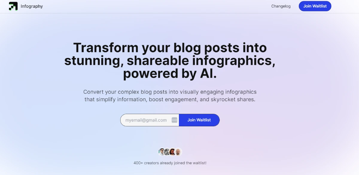 PaidInfography is a platform that uses artificial intelligence to convert blog posts into eye-catching infographics. It assists content creators, marketers, and businesses in improving the visual appeal of their written content. By transforming text into visually engaging graphics, Infography helps make information more captivating and easier to share with a broader audience.