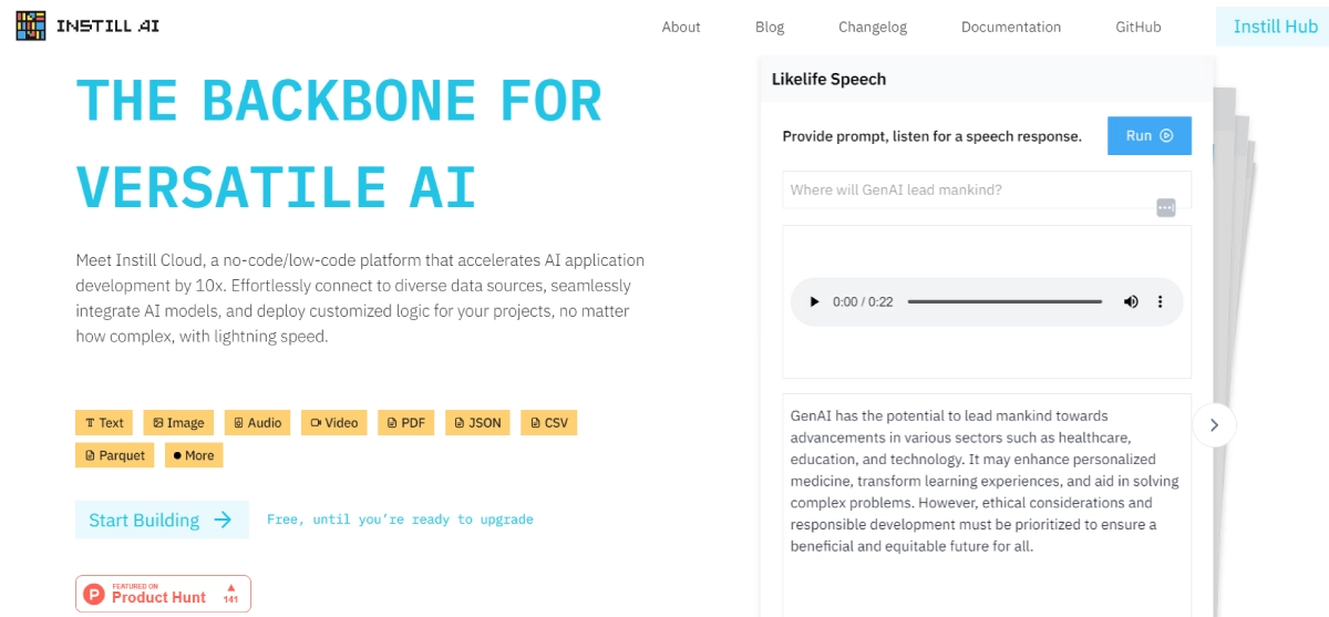 FreeInstill AI is a no-code/low-code platform designed to accelerate the development of AI applications. By easily connecting to various data sources and integrating AI models efficiently, Instill AI enables the rapid deployment of customized logic and pipelines. With its user-friendly drag-and-drop interface, diverse data connectors, and AI model hub, users can quickly create tailored AI solutions without the need to manage complex infrastructure. Experience the ease and speed of developing versatile AI applications by signing up for Instill AI today.