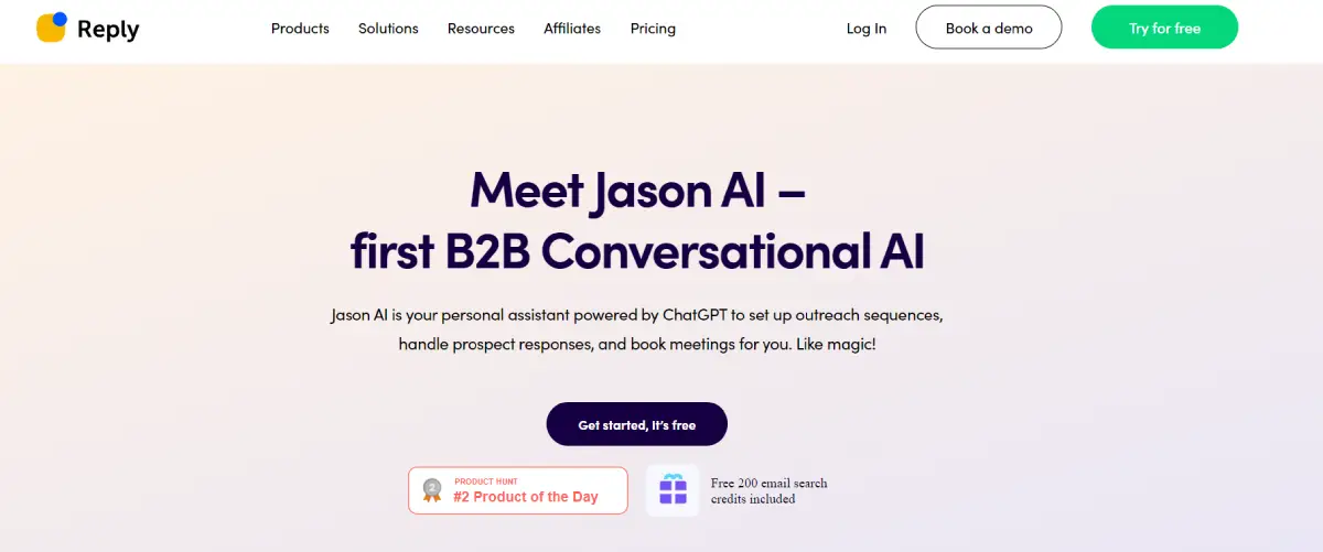 PaidJason AI is a B2B Conversational AI tool by Reply.io that transforms how sales professionals interact with leads. Powered by ChatGPT, it automates outreach, manages responses, and schedules meetings, serving as a sales team's personal assistant. This tool streamlines sales tasks, from identifying prospects to arranging meetings, boosting sales productivity.