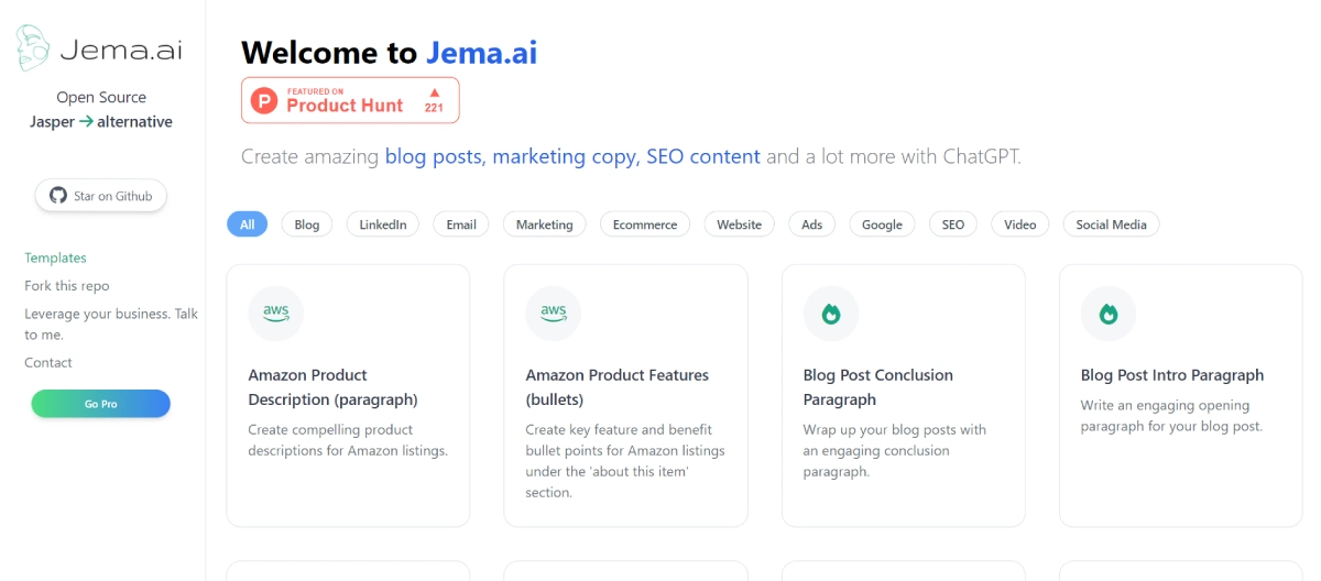 FreeJema AI is an open-source platform that uses ChatGPT to help users create various types of written content. It is tailored for generating top-notch blog posts, marketing materials, SEO content, and more. Jema AI excels in providing unique content creation functionalities like Amazon product descriptions, blog post structures, and imaginative narratives, making it a flexible tool for content producers and marketers.