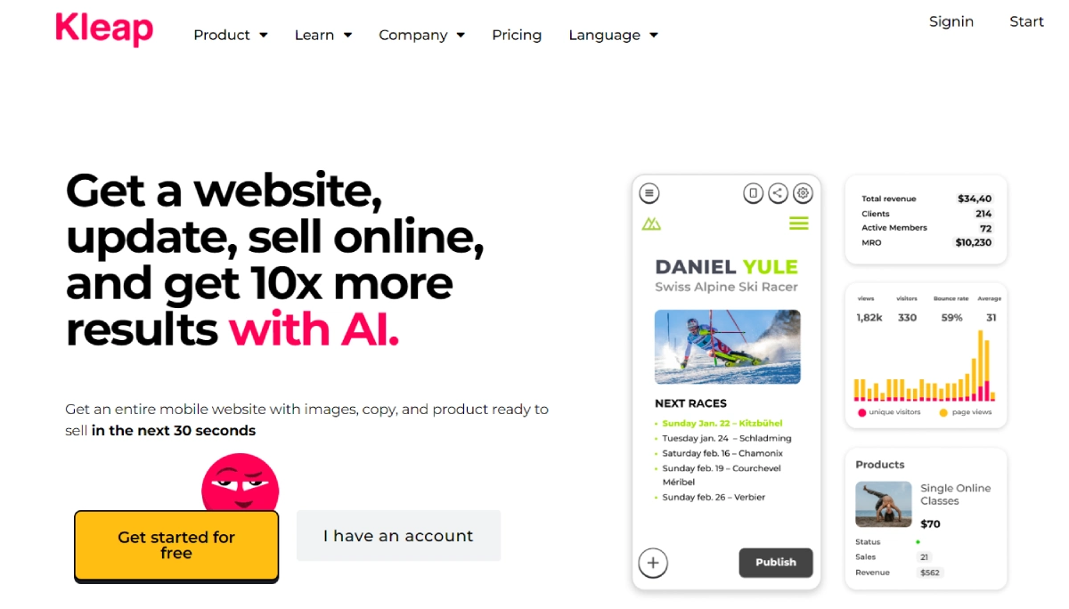 PaidKleap is an AI-powered website builder that empowers users to quickly create customized websites. Ideal for creators, small business owners, and marketing directors, Kleap streamlines the website building process while providing various customization and integration choices. With Kleap, users can efficiently scale their content production and strengthen their online presence. Key features include rapid website creation, extensive customization options, and seamless integration capabilities. Kleap is a user-friendly solution for those seeking to establish a professional online platform without the complexity of traditional website development.