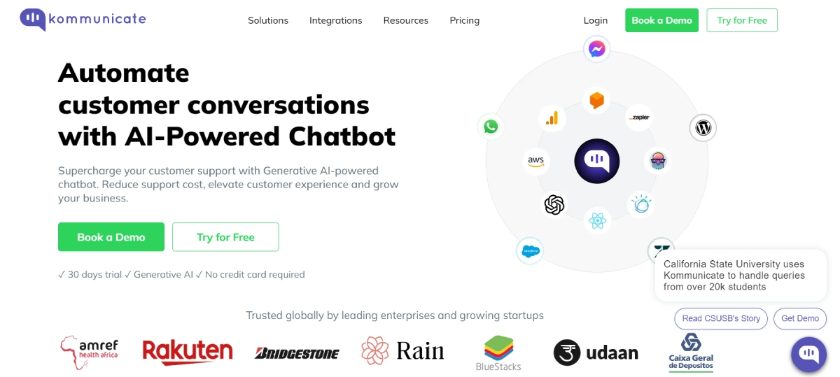 PaidKommunicate is a platform that automates customer service using AI chatbots. It helps businesses enhance customer satisfaction by improving response times and increasing first contact resolution rates. By analyzing conversations in real-time, Kommunicate enables businesses to boost their CSAT scores. Reports show a significant 40% increase in customer satisfaction.