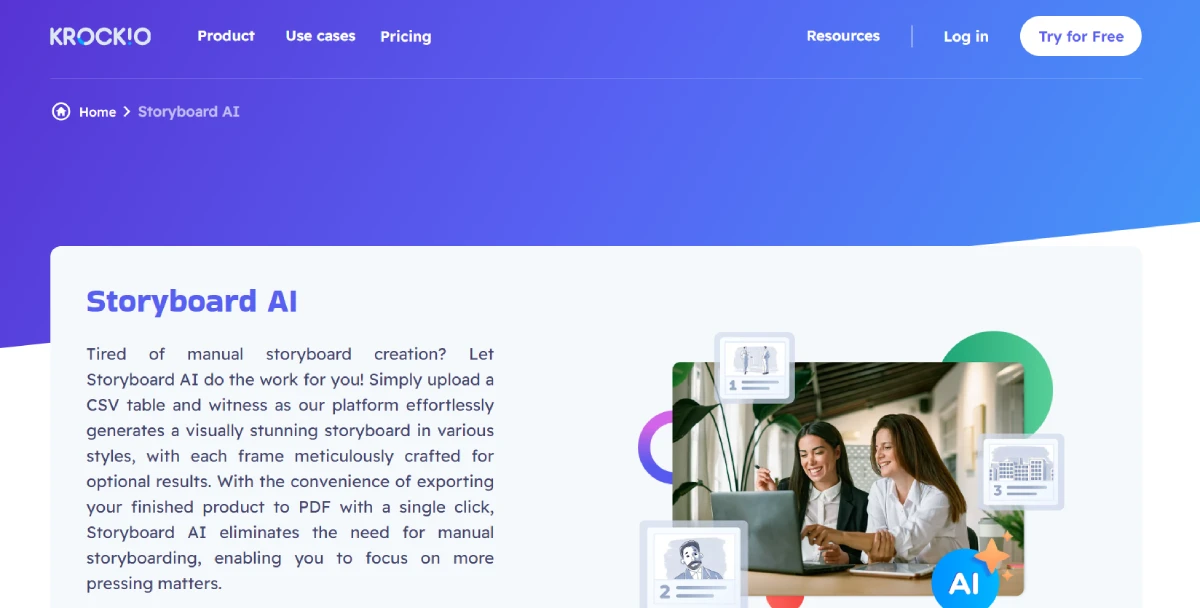 PaidKrock AI Storyboard is a tool that effortlessly creates visually striking storyboards with minimal effort. Ideal for individuals, creative agencies, and marketing firms, this tool streamlines the storyboarding process, freeing you to concentrate on other tasks while it handles the visual storytelling. With Krock AI Storyboard, you can generate captivating storyboards quickly and easily.