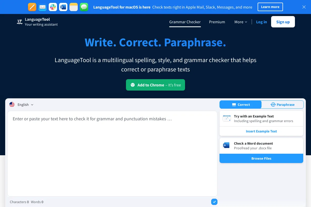 PaidLanguageTool is an AI-powered tool that helps writers improve their writing by detecting errors in grammar, style, and paraphrasing. With support for over 30 languages, writers globally can benefit from its wide language coverage. Users can easily enhance the quality of their content by utilizing LanguageTool to ensure accuracy and clarity in their writing. This tool provides writers with the assistance they need to produce high-quality content across various languages, making it a valuable resource for anyone looking to enhance their writing skills and create error-free content.