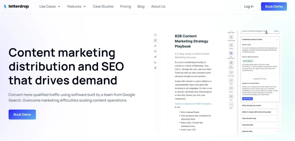 PaidLetterdrop is an AI-powered SaaS platform designed to enhance content for better SEO performance and wider distribution. Developed by former Google employees, it assists brands in boosting organic visibility and traffic. Key features include an SEO Assistant that suggests optimizations based on search intent and technical guidelines, an AI Researcher that generates content briefs from competitor analysis, automated social media engagement, and seamless CMS integrations for efficient collaboration and publishing. By offering a comprehensive suite of AI-driven tools, Letterdrop enables digital marketing teams to drive quality organic traffic effectively.
