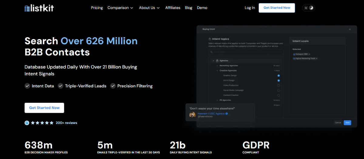PaidListKit is a B2B lead generation tool that provides high-quality, triple-verified contact data for effective outreach. It offers a daily-updated database of over 626 million B2B contacts and 21 billion intent signals, ensuring precision and reliability. By utilizing intent data and real-time email verification, ListKit helps users connect with accurate and engaged contacts. Created by experienced agency owners, this tool streamlines the outreach process for sales professionals, eliminating manual verification tasks and outdated spreadsheets. Ideal for sales teams, agency owners, and businesses running cold email campaigns, ListKit maximizes engagement and conversion rates by delivering triple-verified leads.