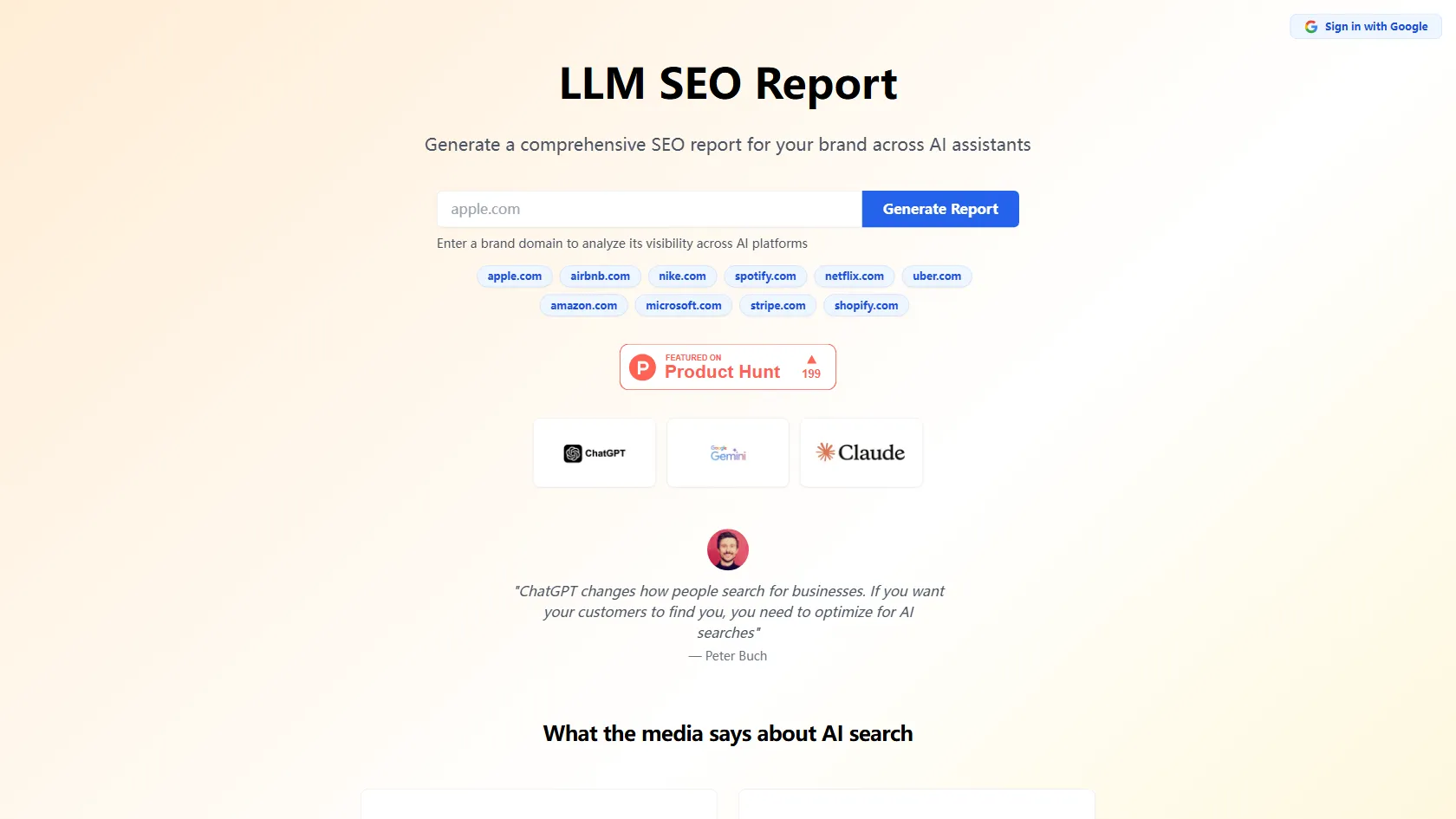 The LLM SEO Report is a tool that helps businesses track and enhance their brand's visibility in AI search results. By examining and providing insights on how AI assistants suggest your brand, it enables businesses to maintain their presence in AI-driven searches.