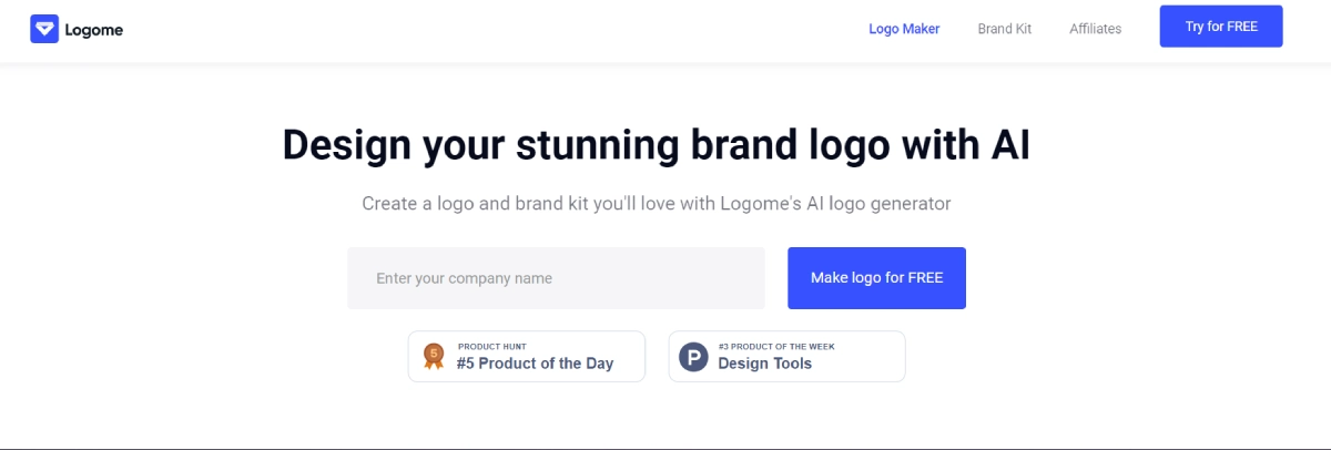 PaidLogome AI is a tool that simplifies logo creation and brand kit development. It enables businesses and individuals to design professional logos and branded materials without design expertise. With Logome's AI logo generator, users can generate various logo options based on their preferences and brand identity by entering their company name. The platform offers a diverse selection of logo designs, colors, and styles to help users find the perfect representation for their brand. Additionally, Logome's Brand Kit feature allows users to create branded materials like websites, email signatures, business cards, invoices, and promotional materials using AI-driven tools after generating a logo with the AI logo generator.