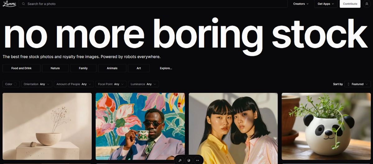 FreeLummi AI helps creatives access a vast collection of over 20,000 unique, AI-generated stock photos for free. Designed to provide high-quality visuals without the hassle of searching, Lummi is ideal for designers, marketers, and content creators seeking fresh images. With reliable search filters and seamless integration with design tools, users can easily find and customize images before downloading. Unlike traditional stock photo libraries, Lummi focuses on diverse visuals created by AI artists, ensuring a unique selection for various projects. The platform is completely free with no subscription fees, making it accessible to all creators. Additionally, Lummi encourages community contributions, allowing AI artists to showcase their work and support fellow creatives.