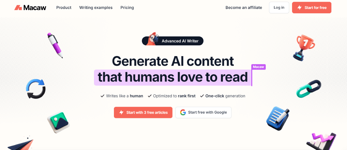PaidMacaw AI Writer is an automated content creation tool that generates SEO-friendly articles based on user-provided keywords. It helps businesses and content creators produce high-quality, search engine-optimized content efficiently. By leveraging advanced AI algorithms, Macaw ensures the generated content reads naturally and aligns with SEO best practices. Users can input keywords, and the platform generates articles with the option for further refinement to match their brand voice and goals. Ideal for marketers, bloggers, and enterprises seeking organic growth and audience engagement, Macaw AI Writer streamlines the content creation process without compromising authenticity or tone.
