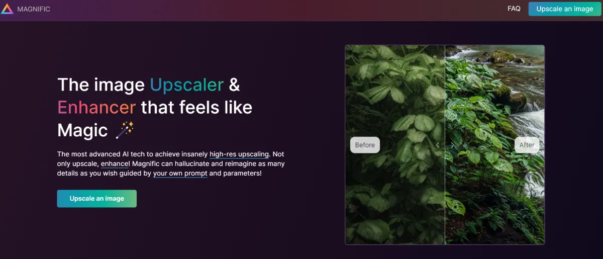 PaidMagnific AI helps enhance and upscale images using advanced artificial intelligence technology. This platform uses modern AI algorithms to improve image quality effectively. While user-friendly, Magnific offers powerful image enhancement capabilities for various needs.