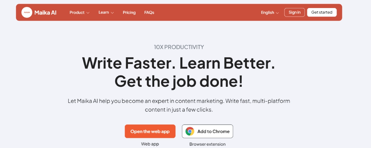 PaidMaika AI is an automatic content creation assistant that streamlines the content creation process. This multifunctional toolkit automates tasks, especially repetitive ones, to save time and enhance output quality. Tailored for content marketing, Maika AI offers features like AI research, content creation in 40+ templates, article and YouTube video summaries, and a knowledge organizer. With various pricing options available, including a free plan for a taste of AI writing, a premium plan at $8.90 for individual creators, and an enterprise plan with custom packages and support, Maika AI caters to diverse user needs. Additionally, there's a pay-as-you-go option priced at $4.50 for one-time payments without monthly commitments.