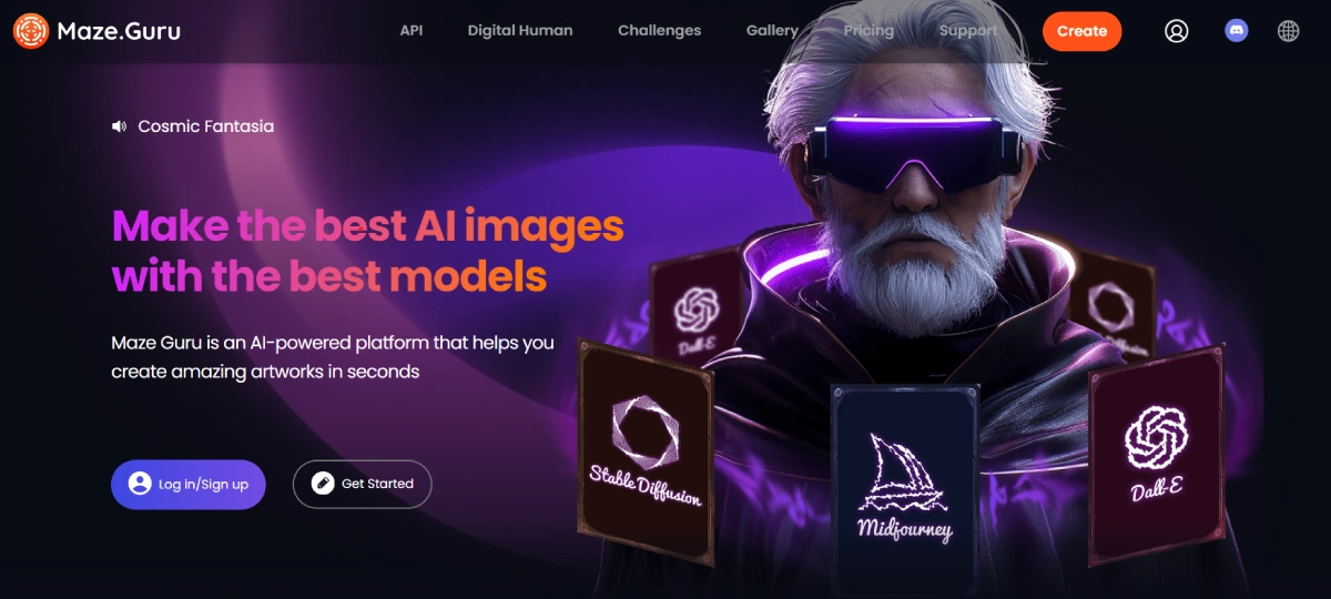 PaidMaze Guru allows you to generate art using AI technology based on text or image prompts. It supports multiple languages for a wider user base. With a free plan, users can start creating and earn 200 points. The standard plan, priced at $9.99/month, offers 2,000 image styles and can handle various image sizes.