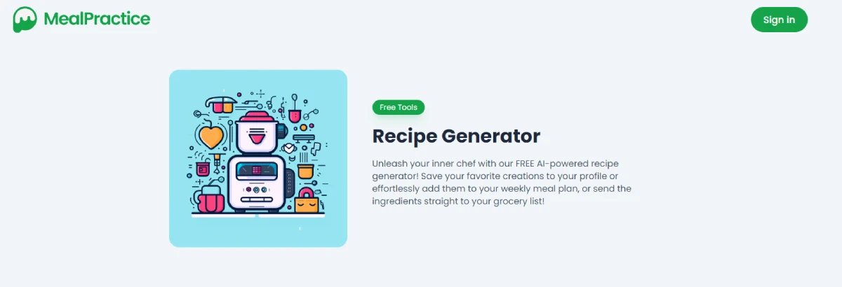 FreeMealPractice is an AI-powered recipe generator that helps you create personalized chef-quality recipes based on your taste preferences. You can customize your choices by selecting preferred proteins, nutrition styles, cuisines, and restrictions to receive instant recipe recommendations. The tool easily integrates with your meal planning app, allowing you to sync ingredients to your grocery list. It offers a recommendation engine that suggests recipes based on your favorites and past meal plans. You can also explore recipes shared by other users for inspiration. With MealPractice, you can break the monotony of repetitive meals and discover new flavors, techniques, and cuisines effortlessly.
