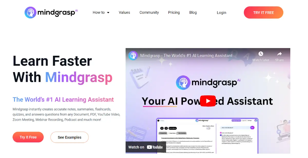 PaidMindGrasp AI helps learners enhance their study efficiency through advanced artificial intelligence tools. The AI Note-Taking Assistant generates notes, summaries, and flashcards instantly from various sources to aid retention. Learners can interact with the Virtual Study Buddy to ask questions and clarify doubts. Adaptive Quizzing creates personalized quizzes to reinforce knowledge gaps. With support for over 10 languages, MindGrasp caters to a global audience. The Chrome Extension allows easy capture of online content for accelerated learning. By automating reading, comprehension, and note-taking tasks, MindGrasp optimizes study time for skill development. The platform offers different tiers with varying features, including a free trial for users to explore before subscribing.