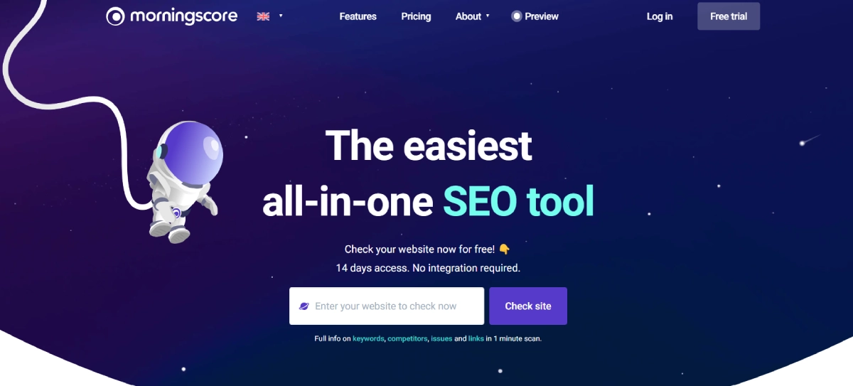 PaidMorning Score is an all-in-one SEO platform that simplifies the process of improving search engine rankings and increasing organic traffic for businesses. It offers four paid plans with comprehensive SEO tools, an easy-to-use interface, and intelligent guidance. Businesses of all sizes can use Morning Score to enhance their SEO strategies and attract more qualified organic traffic. The platform streamlines complex SEO tasks into straightforward, actionable steps.