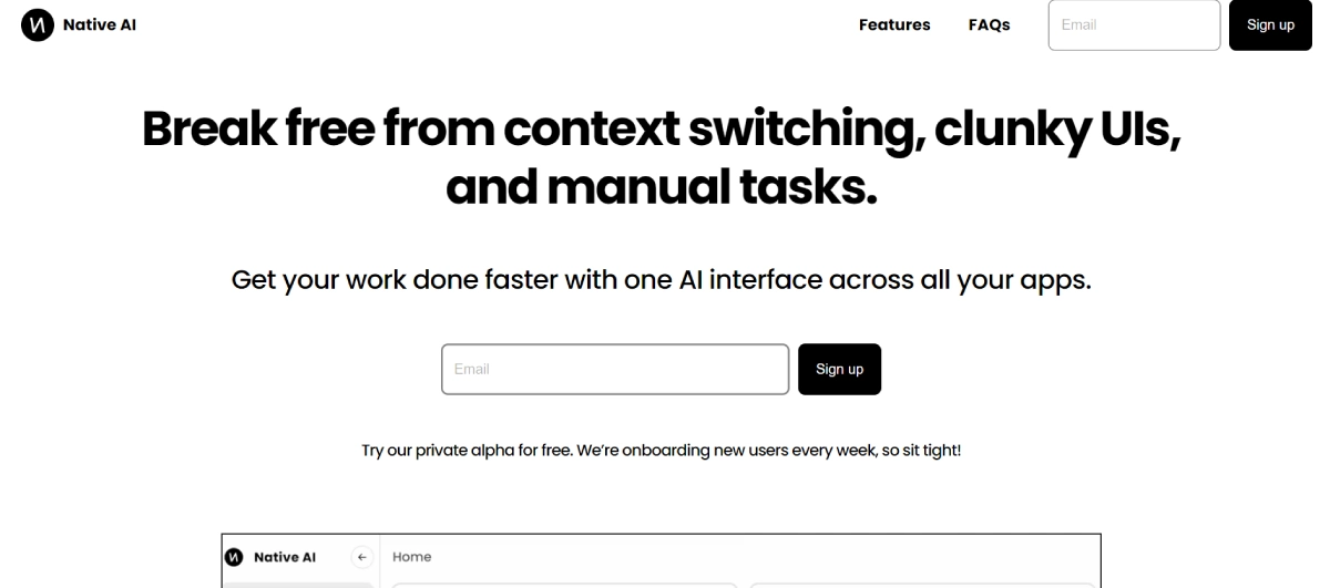 PaidNative AI is a unified AI-powered interface that integrates with various apps and tools. It acts as a central hub for interacting with your applications through a single, user-friendly interface. Currently in a private alpha stage, Native AI is gradually onboarding new users each week. You can try out the platform for free to experience the benefits of having an AI-driven interface. Pricing details and subscription plans will be disclosed upon the public release.