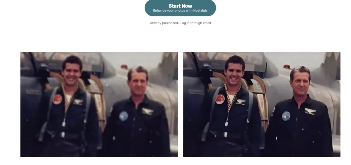 PaidNostalgia Photo is an image processing tool that enhances photos by removing blemishes, boosting resolution, and enhancing detail. Using advanced deep learning techniques, it restores photos with unparalleled realism, maintaining a natural look without artificial effects. With Nostalgia, you can easily revive your entire photo collection by uploading old damaged prints or negatives. The AI provides three enhanced variations to choose from, bringing faded photos back to life. Designed for amateur snapshots, Nostalgia delivers optimal results for personal photo collections and allows users to provide feedback for continuous improvement. This tool is perfect for surprising loved ones with restored versions of cherished images, preserving precious memories in perfect clarity.