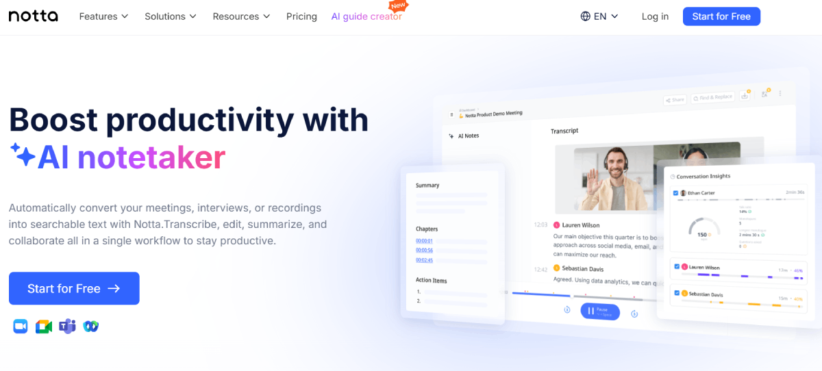 PaidNotta AI is an advanced tool that streamlines the task of capturing and organizing meeting notes. Acting as an AI notetaker, it automatically transcribes and condenses meeting discussions into easily searchable text. This tool is perfect for individuals, teams, and businesses seeking to minimize the time spent on manual note-taking and boost teamwork efficiency. With Notta AI, you can effortlessly create concise summaries of meetings, making it simple to revisit key points and action items. By eliminating the need for manual note-taking, Notta AI allows you to focus on engaging in productive discussions during meetings rather than worrying about detailed note-taking. Say goodbye to the hassle of sifting through pages of notes – Notta AI has got you covered.