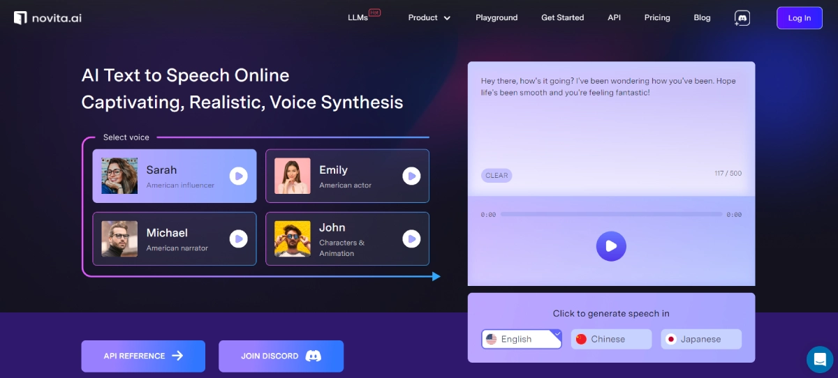 Novita AI Text-to-Speech API: Realistic Voice Generation