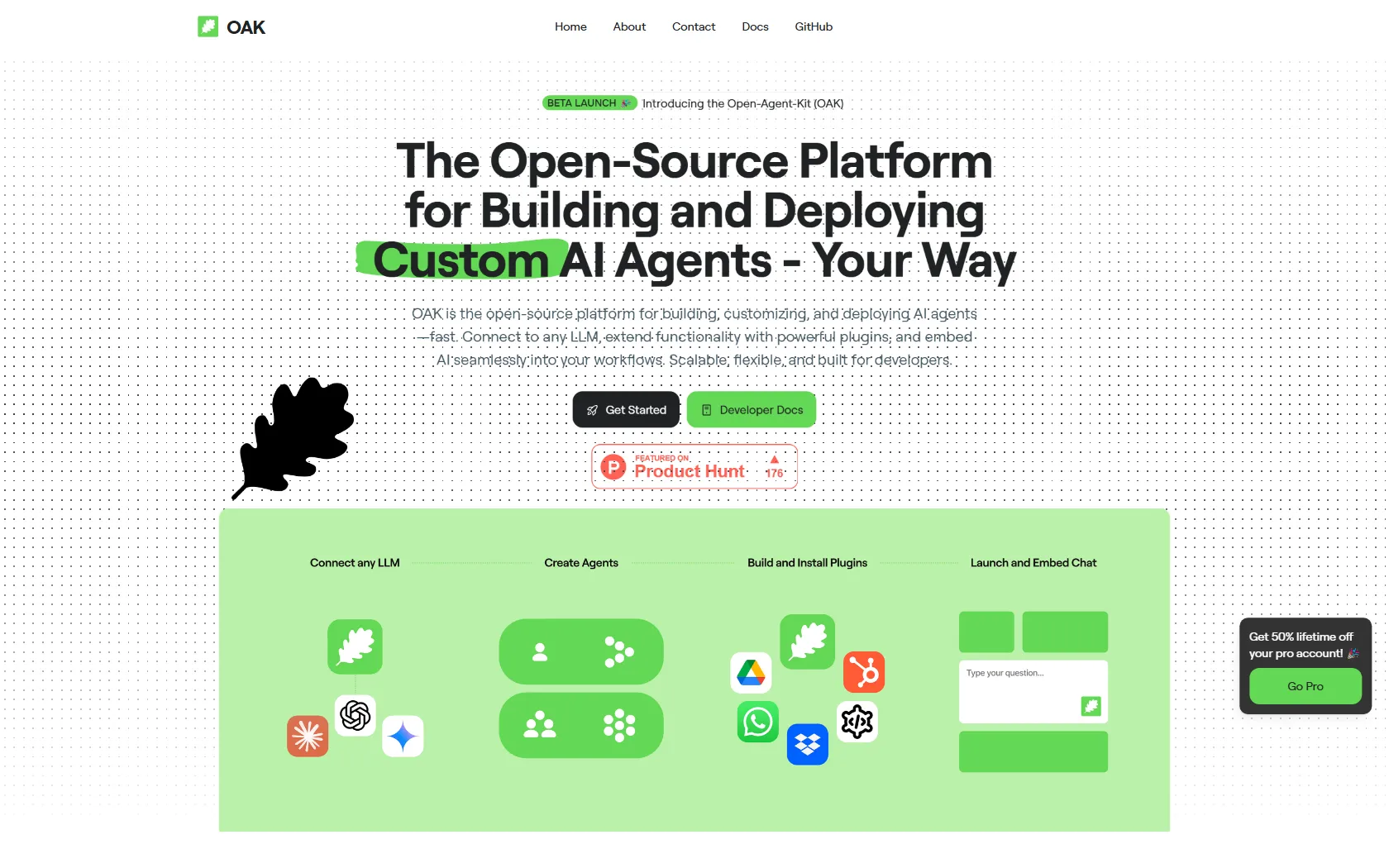 With OAK, developers can easily create and deploy AI agents. They can define agents' purposes, customize with plugins, and deploy them into different environments. OAK's modular design, built-in integrations, and intuitive developer experience streamline the process of enhancing workflows with AI capabilities.