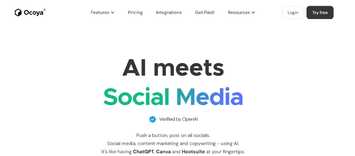 PaidOcoya is an all-in-one platform that uses artificial intelligence to streamline social media marketing. It simplifies the process of creating, scheduling, and analyzing social media campaigns by utilizing AI for content creation and graphics generation. With Ocoya, users can save time and enhance the effectiveness of their social media presence. By specifying the type of content needed, such as a blog post or social media image, Ocoya's AI generates it automatically. This content can then be scheduled for publication on various platforms like Facebook, Instagram, Twitter, and LinkedIn. Ocoya integrates with over 30 top tools, enabling a seamless automated workflow to manage social media tasks efficiently.