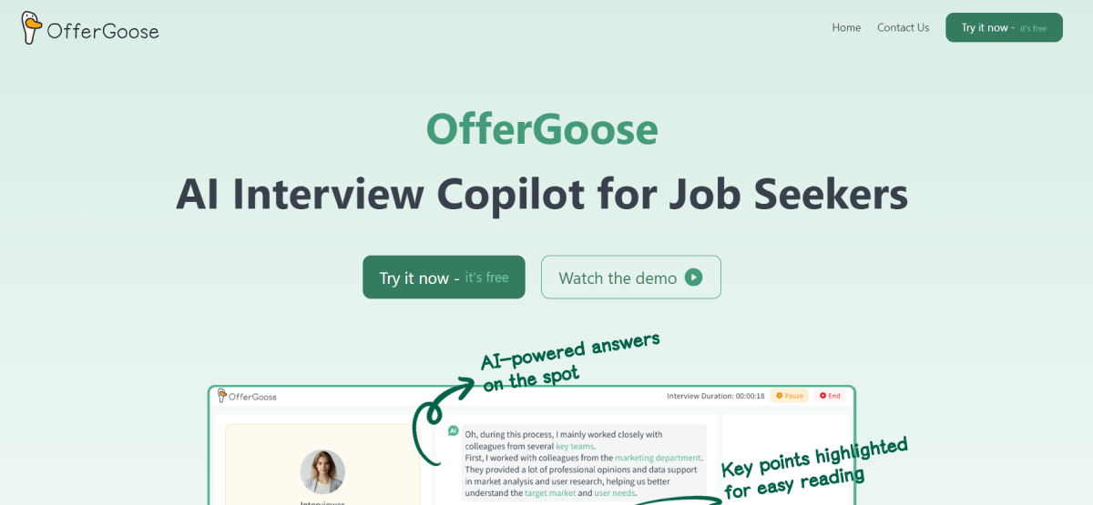 PaidOfferGoose is an AI-powered tool that helps job seekers excel in interviews. It offers mock interviews, tailored feedback, and real-time performance reviews for candidates in all industries. Whether you're new to the job market or a seasoned professional, OfferGoose guides you through the interview process with confidence. By simulating real interview scenarios and providing instant feedback, it helps users enhance their skills continuously. With features like AI-driven mock interviews and personalized questions, OfferGoose is a valuable resource for refining interview techniques. Available in over 50 countries, it supports job seekers worldwide in improving their interview performance and securing their dream jobs.