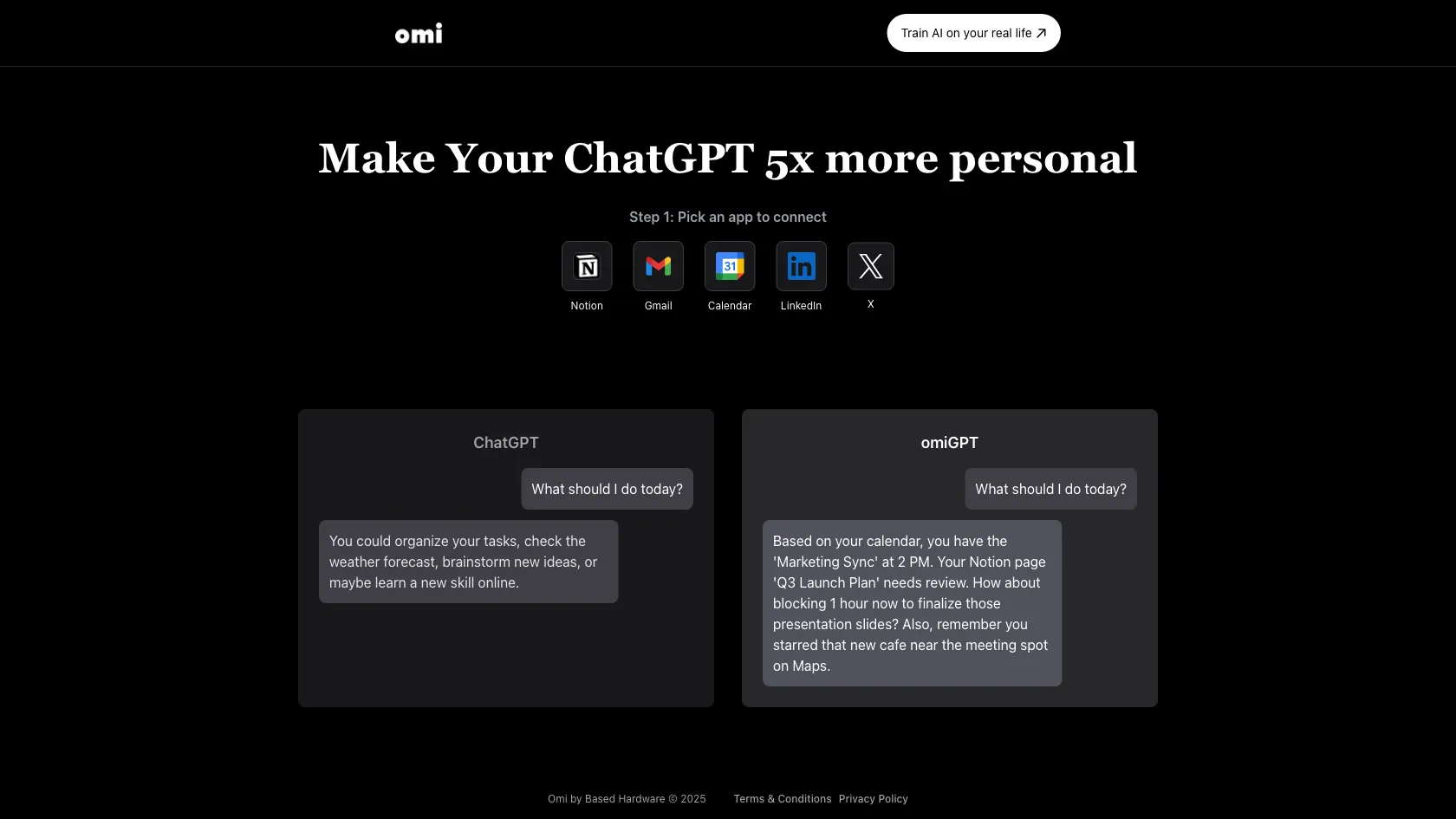 FreeEnhance your ChatGPT conversations with Omi, a cutting-edge AI solution from Based Hardware. By leveraging data from various apps like Notion, Gmail, and LinkedIn, Omi offers tailored recommendations to personalize your interactions and boost productivity.
