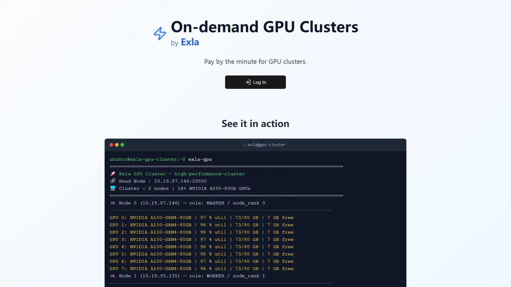 PaidExperience seamless access to high-performance GPU clusters for AI/ML tasks through Exla's on-demand service. Launch distributed training clusters swiftly with top-tier GPUs and pay only for what you use, without any initial investments or long-term commitments.