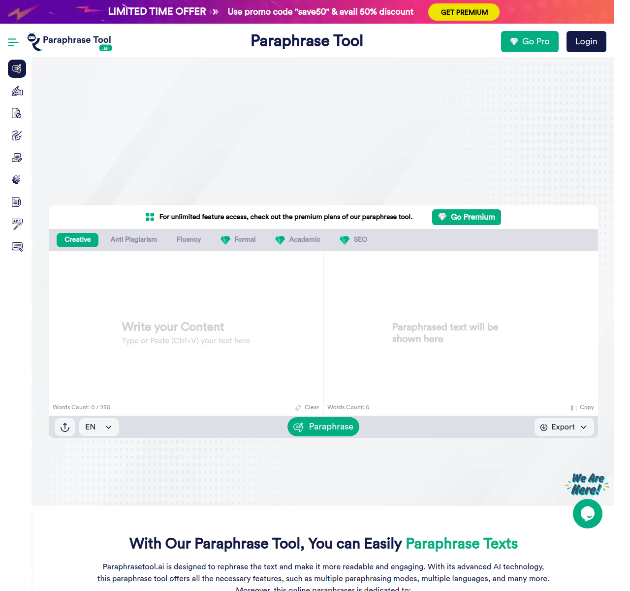 PaidParaphrasetool AI helps users rephrase content effectively using AI technology. It offers different paraphrasing modes for SEO optimization, academic writing, and improving fluency. This tool is user-friendly and packed with features, making it suitable for writers, students, researchers, and professionals seeking to create high-quality, plagiarism-free content effortlessly.