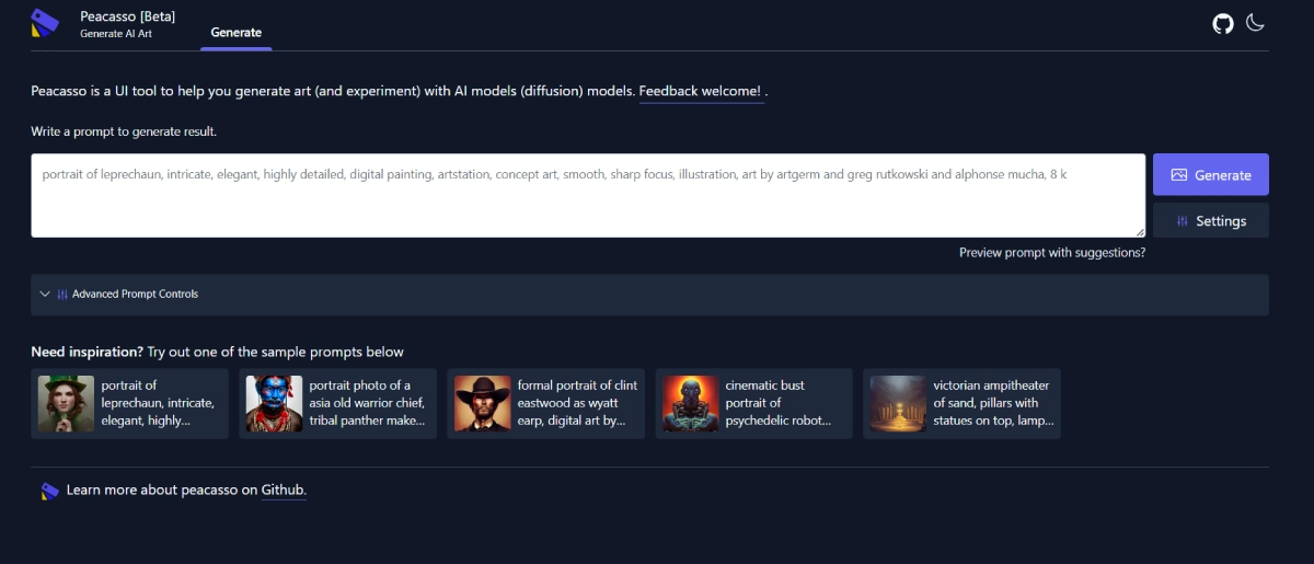 FreePeacasso enables users to create art and experiment with AI image generation models, particularly stable diffusion models. This open-source UI tool, developed by Victor Dibia, is available on GitHub. It features core modules for image generation using the HuggingFace Diffusers library and a web API with a FastAPI backend and React frontend. Peacasso is designed with principles from communication theory and human-AI interaction guidelines to offer an intuitive interface. Its goals include easy installation, good defaults, and gradual exposure of experimentation features.