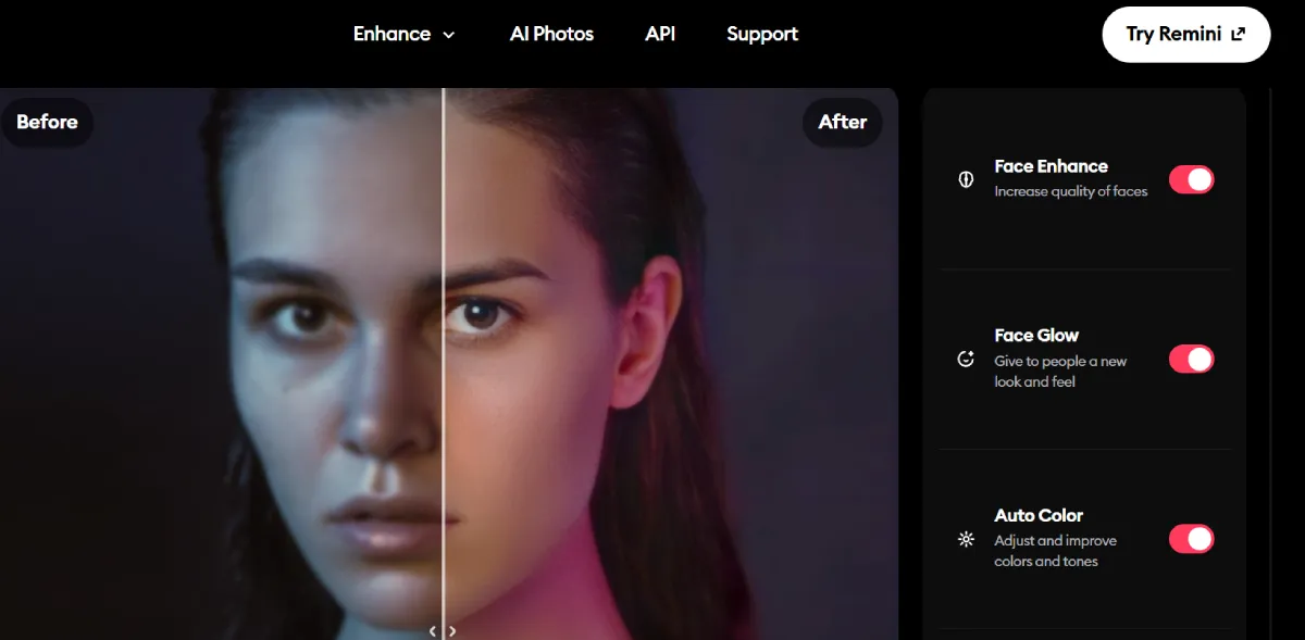 FreeRemini is an AI-based platform that enhances and restores photos and videos, providing remarkable improvements to visual content. With Remini, users can effortlessly transform their media, achieving stunning upgrades through innovative AI technology. Businesses across various industries benefit from Remini's capabilities, catering to diverse needs with its powerful enhancements. Additionally, Remini offers easy API integration, making it simple to incorporate its features into existing workflows. Whether enhancing personal memories or professional projects, Remini provides a innovative solution for enhancing visual content with ease and efficiency.