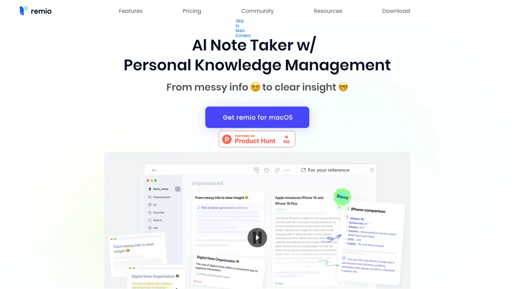 Remio simplifies information management for professionals and students. Users can effortlessly capture, organize, and access information with features like auto-capture, AI search, and smart write tools. It enhances content creation and knowledge retrieval, making it an essential tool for efficient information handling.