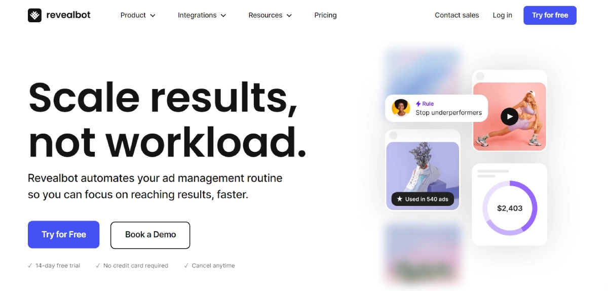 PaidRevealbot is an ad automation platform that streamlines ad campaign management, allowing you to concentrate on achieving better outcomes. By automating tasks such as budgeting, creative testing, audience segmentation, and campaign reporting, Revealbot saves you time and effort. Whether you're a small business or a large enterprise, Revealbot's user-friendly interface makes it easy to optimize and scale your ad campaigns effectively. With a free 14-day trial requiring no credit card information, you can explore its features risk-free. Paid plans start at $99 per month, with custom enterprise pricing options available for larger organizations. Say goodbye to manual ad management and let Revealbot enhance your advertising efforts efficiently.