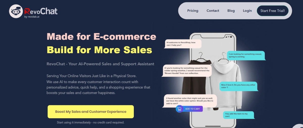 Transform your e-commerce experience with RevoChat's AI assistance