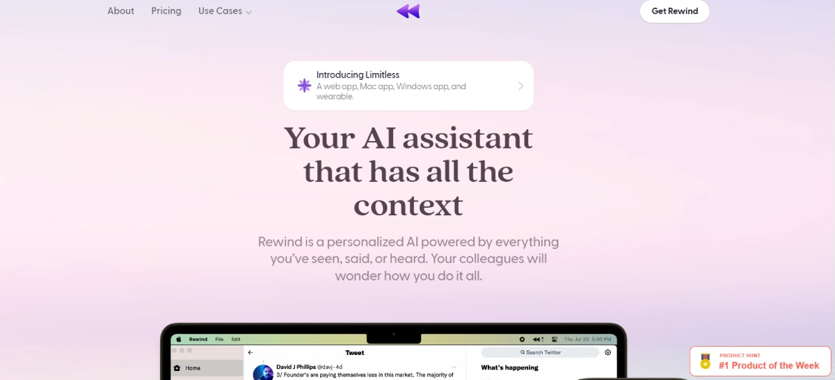 PaidRewind AI is a tool that serves as a personalized AI assistant available across various platforms. It captures and stores all visual, auditory, and verbal information you encounter to provide contextual assistance. Geared towards professionals, Rewind helps enhance productivity by recording, transcribing, and summarizing meetings while also safeguarding critical data.