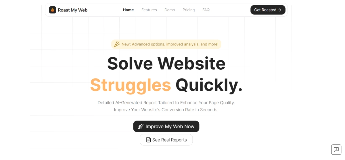 PaidRoast My Web is a website analysis tool that delves deep into your site's design, user experience, and content quality. Using AI analysis, it offers practical suggestions to boost your site's performance and conversion rates. Whether you're an individual refining a personal project or an agency enhancing client websites, Roast My Web provides precise, data-driven advice to enhance your online presence.