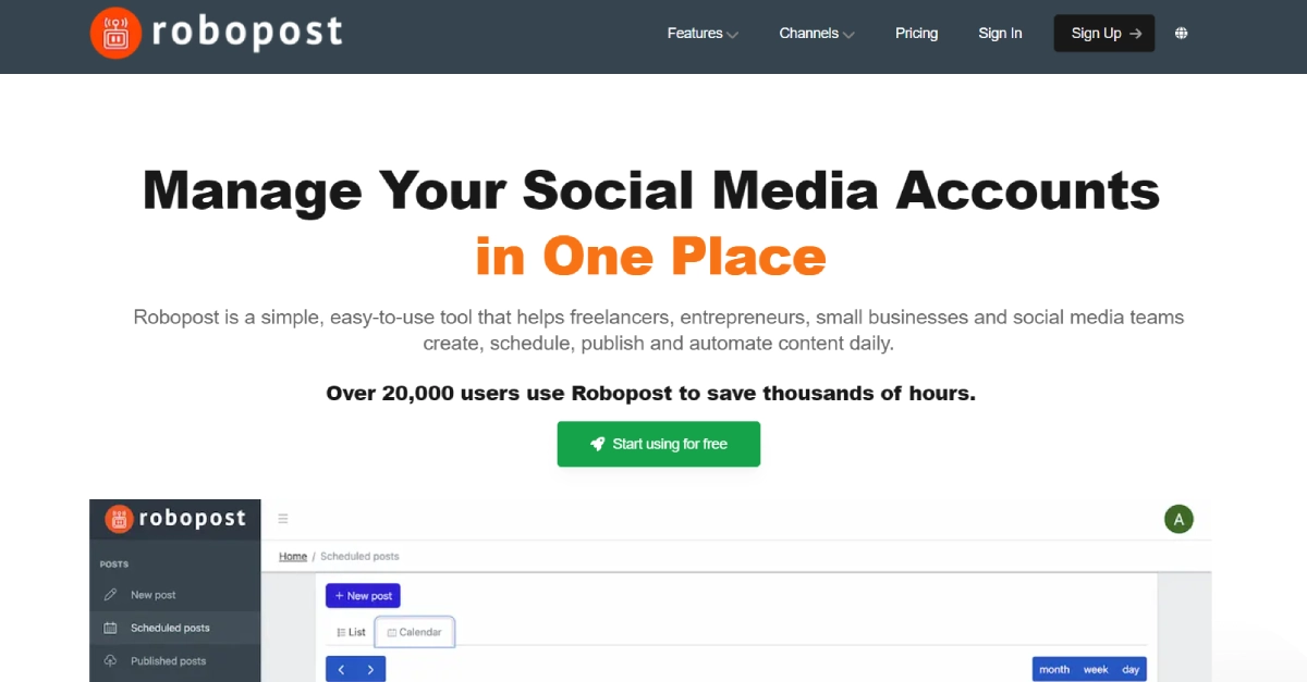 PaidRobopost is a versatile tool ideal for freelancers, entrepreneurs, small businesses, and social media teams. It simplifies social media management by enabling users to effortlessly create, schedule, publish, and automate content across various platforms. With Robopost, you can efficiently manage multiple accounts from a single interface, saving time and boosting productivity. Its user-friendly design makes it easy to schedule posts and automate content delivery. Additionally, Robopost offers flexible pricing plans to suit different needs and budgets. By using Robopost, you can streamline your social media workflow, enhance efficiency, and ensure consistent engagement with your audience.