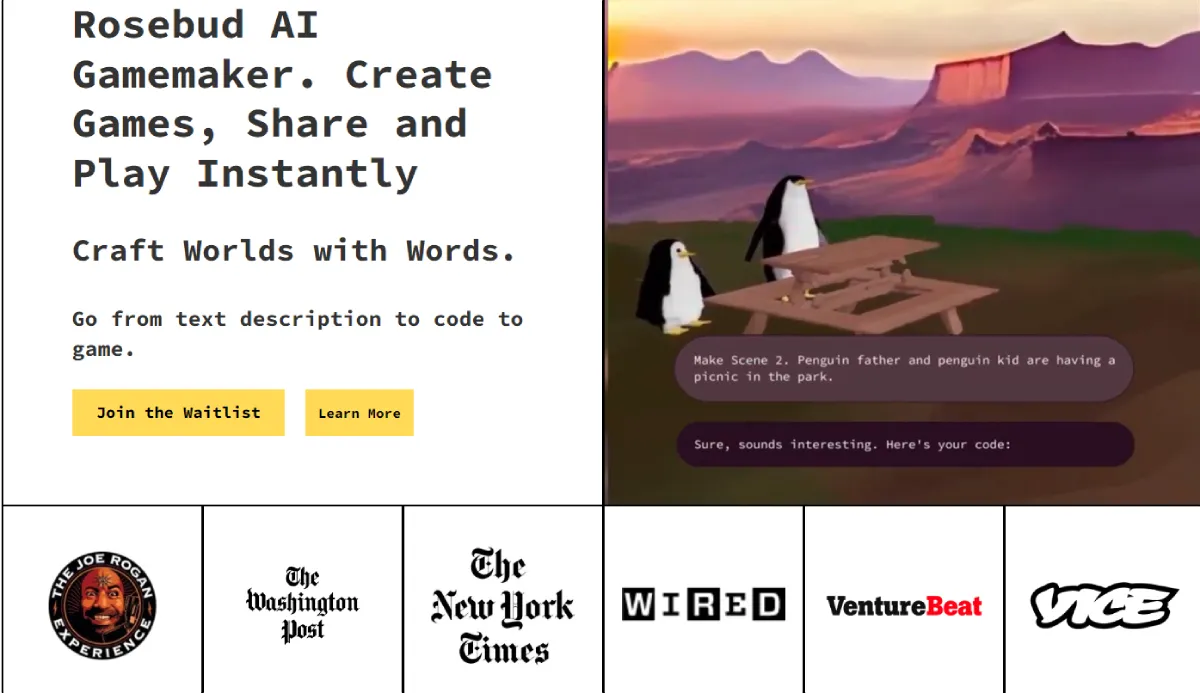 FreeCraft playable 2D and 3D games effortlessly with Rosebud AI. Describe game elements using natural language, such as environments, sprites, and mechanics, and watch as the AI generates executable game code from your text. Say goodbye to programming and hello to limitless creativity with codeless game creation. Produce new assets, characters, and levels on the fly, iterating and experimenting faster than ever. Rosebud's community-driven platform continuously learns from user feedback, making the AI smarter with each creation. Democratizing game creation, Rosebud's no-code approach makes game development intuitive and inclusive for all. Explore game creation without constraints and join a creative community shaping the future of gamedev with Rosebud AI.