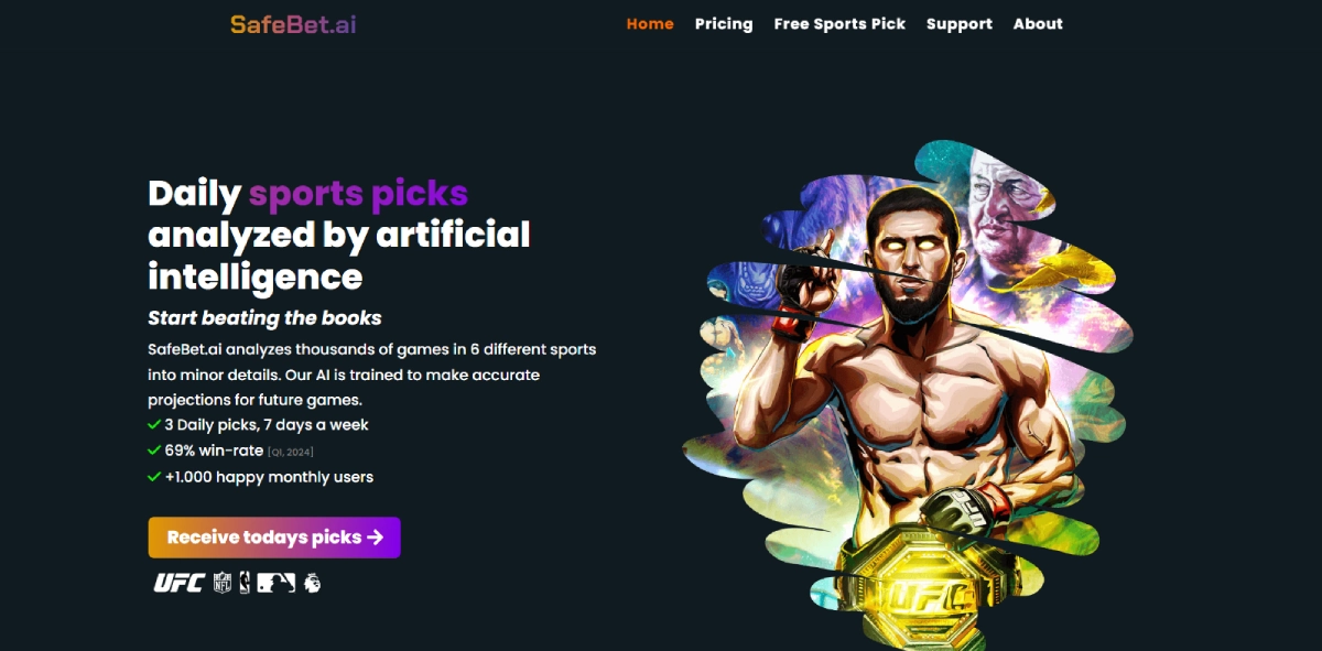 PaidSafeBet AI is a sports betting platform powered by artificial intelligence that offers daily sports predictions. It caters to both beginners and experienced bettors by analyzing numerous games across various sports to provide data-driven insights. With over 825,000 data points from 22,844 matches, SafeBet AI boasts a 69% win-rate, giving users an advantage in sports betting. Developed by a team of experts in data analysis, AI, and sports in the Netherlands, SafeBet AI aims to reduce emotional decision-making in betting. The platform covers NBA, NFL, MLB, UFC, and Soccer, offering three daily picks along with detailed analyses and AI-driven recommendations.