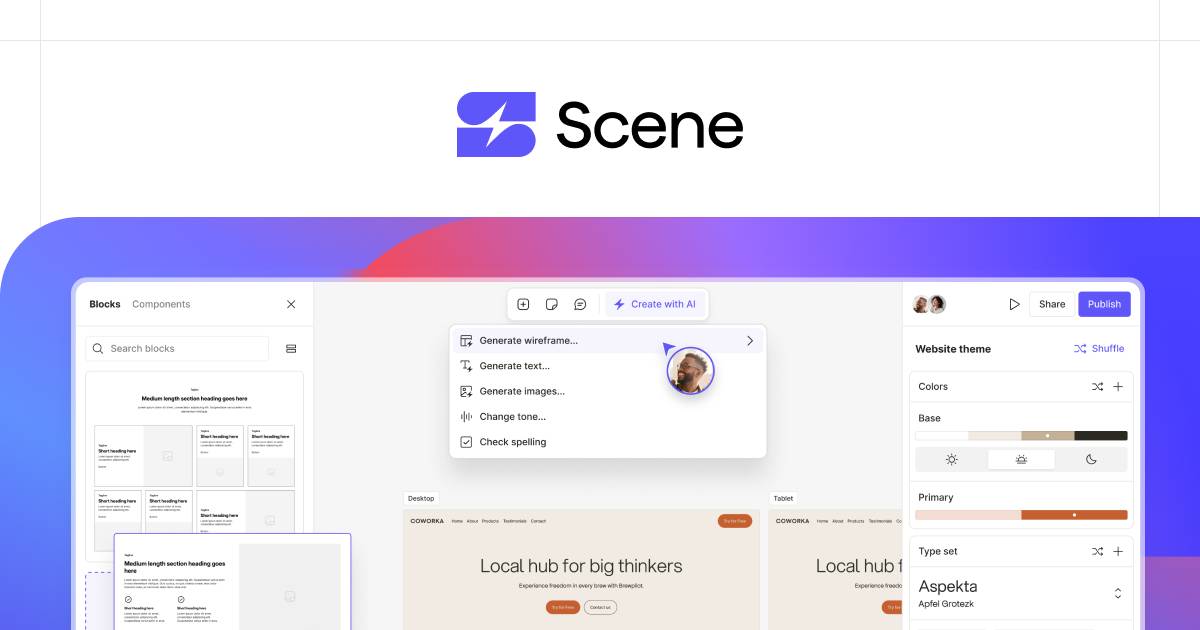 With Scene, creating a website is easy. Users can generate site layouts with one prompt, browse themes swiftly, and personalize every detail. Perfect for marketing and small business websites, it facilitates team collaboration and direct publishing.