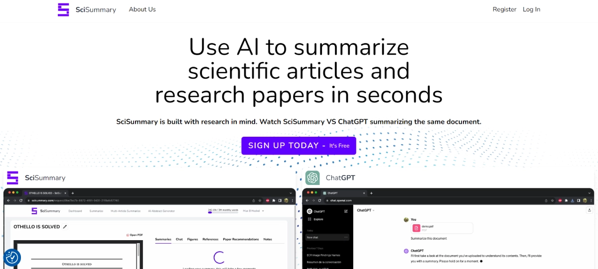 PaidSciSummary helps users quickly summarize scientific articles and research papers using AI technology. Researchers, students, and anyone needing to digest complex academic content can upload documents to the dashboard or send them via email to receive a concise summary within minutes. By leveraging advanced GPT models, SciSummary eliminates the need to sift through lengthy papers. The tool is ideal for literature reviews, staying updated on research trends, or gaining an overview of specific studies. SciSummary continues to enhance its summarization capabilities with expert guidance, making it a valuable resource for efficiently processing scientific information.
