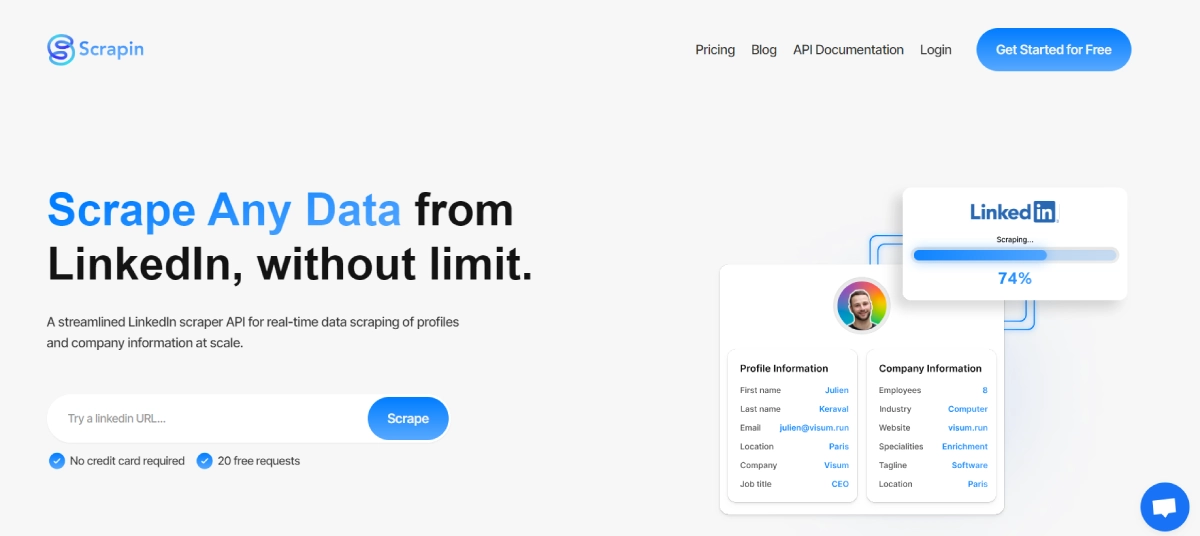 PaidScrapin helps users gather detailed information from LinkedIn profiles and companies, even without their own LinkedIn account. It ensures compliance with GDPR and CCPA regulations and provides real-time data without relying on a stored database. Tailored for individuals and organizations requiring up-to-date LinkedIn data, Scrapin offers a powerful API for large-scale data extraction, addressing issues like data accuracy, legal compliance, and integration challenges commonly faced by other scraping tools. Its key features include real-time data collection, strong legal adherence, and easy integration through SDKs and an open-source option on GitHub. Scrapin efficiently provides reliable LinkedIn data for recruitment, market analysis, sales intelligence, and more. Various pricing plans are available to meet different needs and budgets.