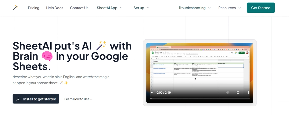 PaidSheet AI is an AI-powered add-on for Google Sheets that enhances productivity by automating tasks and providing valuable insights. Its features include Sheet Brain, which simplifies copywriting by storing and retrieving information, SheetAI List for diverse AI-generated answers, and SheetAI Fill for tasks like product description generation. With AI-powered data manipulation, users can sanitize data, predict values, and more. By streamlining workflows and reducing manual tasks, Sheet AI helps users save time and make data-driven decisions. This cost-effective tool easily integrates AI capabilities into Google Sheets, making work more efficient and insightful.