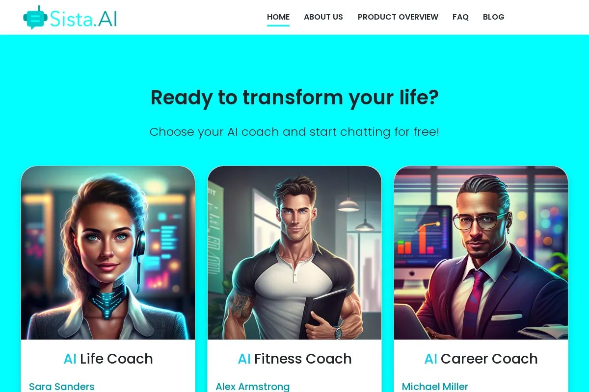 PaidSista AI is an AI-driven coaching service that provides personalized guidance from dedicated coaches like Sara, Alex, Michael, Victoria, Salma, and Bryan. Sara focuses on life coaching, Alex on fitness, and Michael on career development. This platform offers tailored coaching sessions, flexible payment options, secure chat, 24/7 support, and proactive AI check-ins to help individuals achieve their goals. Users can choose from a free plan for 50 conversations or paid plans starting at $4/month for extended chats and multilingual support. Sista AI aims to make coaching accessible, affordable, and convenient through modern AI technology.