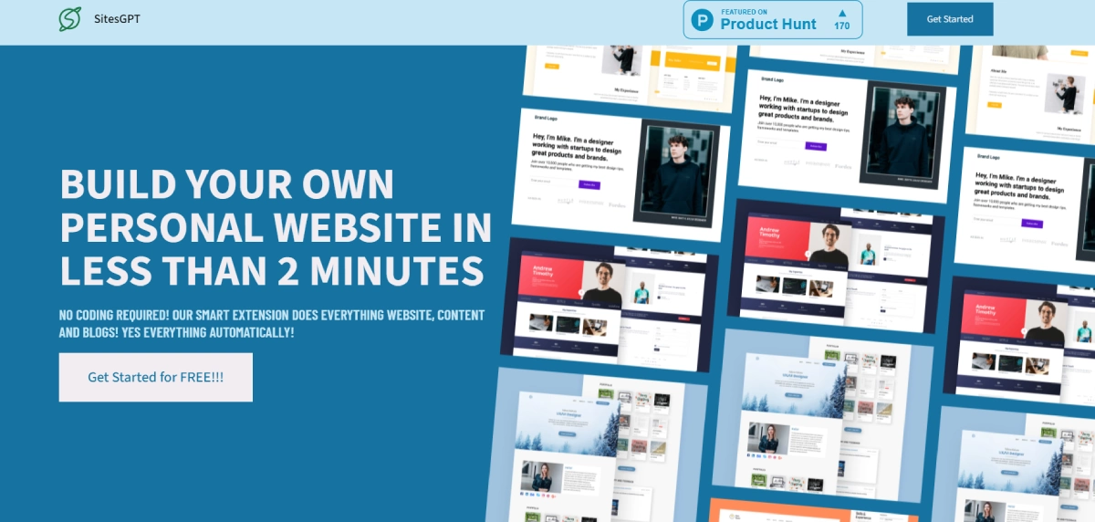 PaidSitesGPT allows you to quickly create personal websites with ease. It promises to have your website ready in under 2 minutes, making it ideal for individuals seeking a simple solution to establish an online presence without technical skills. While specific pricing details are not provided, platforms like SitesGPT typically offer various plans, including free basic versions and paid subscriptions with extra features and customization options.
