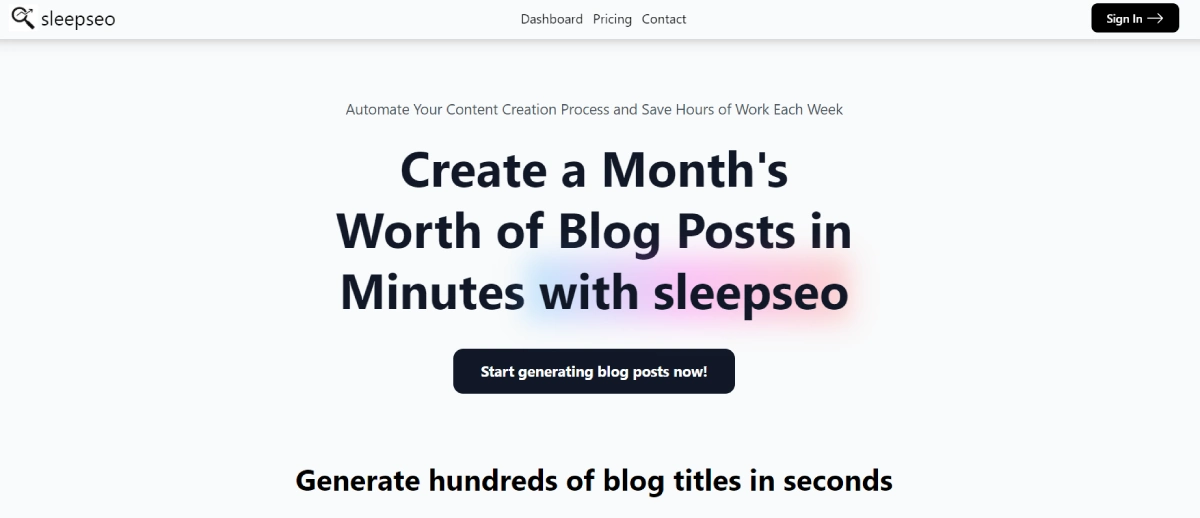 PaidSleep SEO is an innovative AI-powered solution that automates and simplifies content creation, significantly reducing your weekly workload. By utilizing modern natural language processing and machine learning capabilities, Sleep SEO enables you to produce top-notch blog posts, articles, and content concepts quickly and efficiently. This tool addresses the time-consuming task of generating high-quality content, allowing you to focus on other essential aspects of your work. With Sleep SEO, you can save valuable time and effort while maintaining a consistent flow of engaging content for your audience.