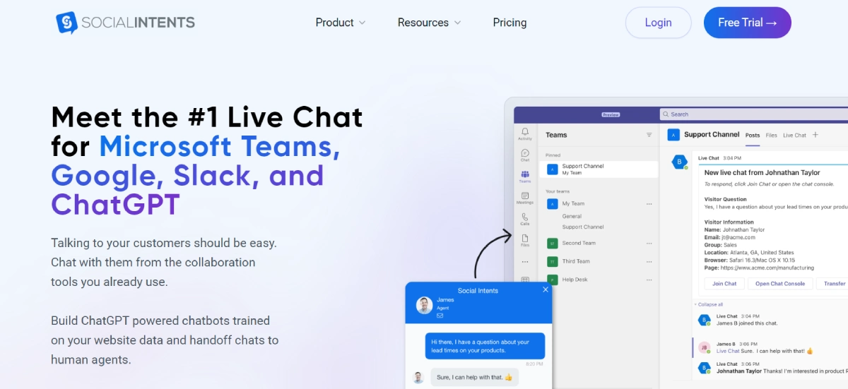 PaidSocial Intents is a software tool that integrates AI chatbots and website live chat to enable real-time communication between businesses and their customers. This tool is designed to provide instant support, answer questions, and engage visitors on websites. By using Social Intents, businesses can enhance the overall customer experience, potentially leading to increased sales and customer satisfaction. This tool allows businesses to interact with customers efficiently and effectively, improving customer service and building stronger relationships with their audience.